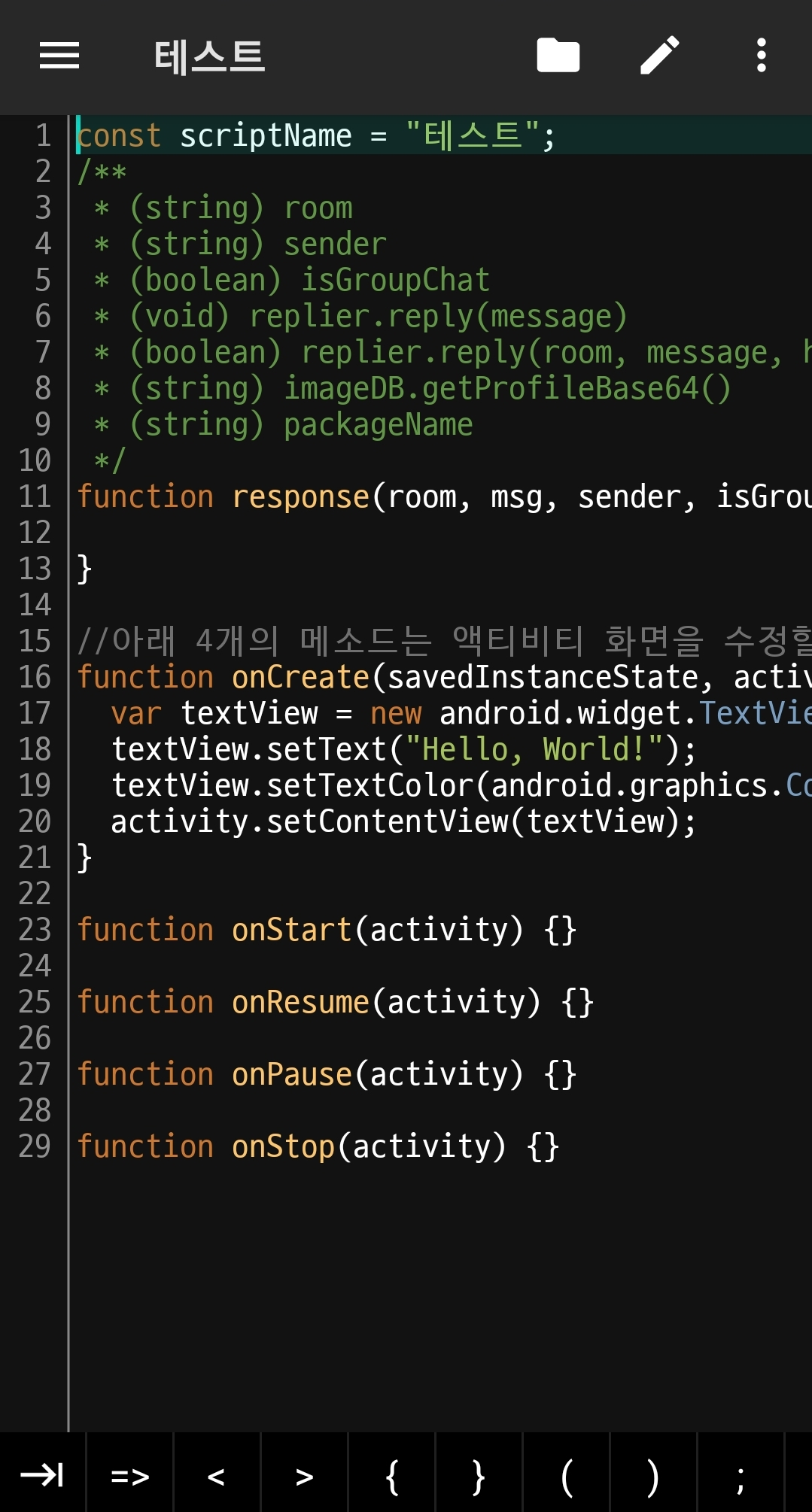 if (msg == "/안녕") { //수신된 채팅 내용이 "/안녕"이라면