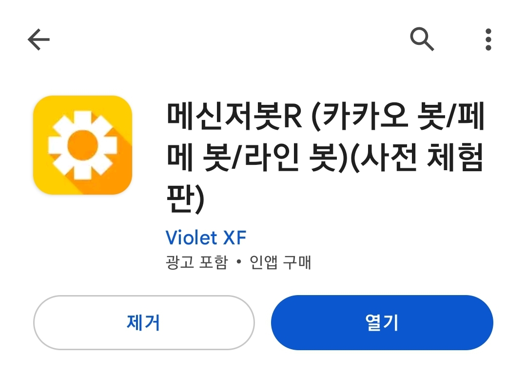 일단 메신저봇R 이라는 앱을 다운로드 해주자. 이 앱을 통해서 카카오톡 봇을 만들 것이다.