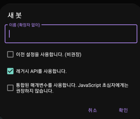 그러면 이러한 화면이 나올 것이다. 이 화면에서 + 버튼을 눌러 필요한 봇을 추가할 수 있다.