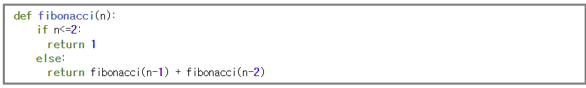 아래는 재귀를 이용해 파이썬으로 구현한 피보나치 수열이다.