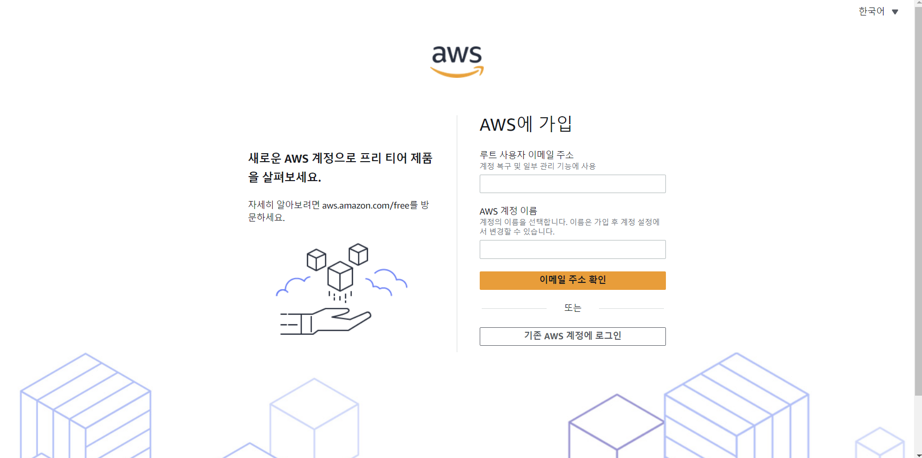 AWS 계정 새로 만들기를 클릭한 후